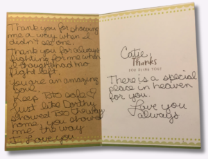 “(Heart) broken by a man, mended by A Safe Place. Sometimes success is loud. Sometimes success is quiet”.